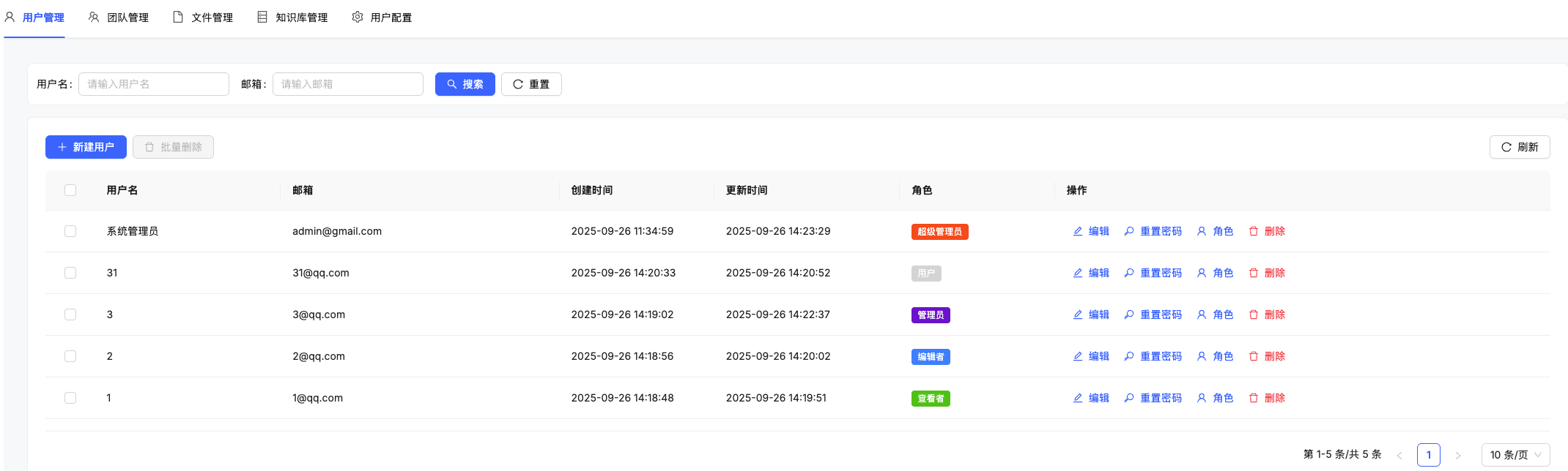 • 用户 / 团队 / 知识库 / 配置多级权限控制